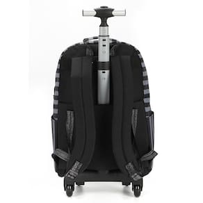 Características da mochila: Mochila confeccionada em material poliéster. Com rodinhas. Com 3 compartimentos. Com alça de mão. Com alça de costas acolchoadas. Com puxador de zíperes personalizados com w. Com detalhes brilhoso. Com chaveiro. Com bolso para garrafinhas.
