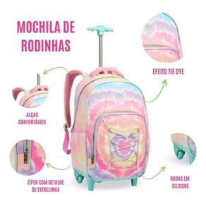 Kit Mochila Escolar de Rodinhas Estampa Bordada