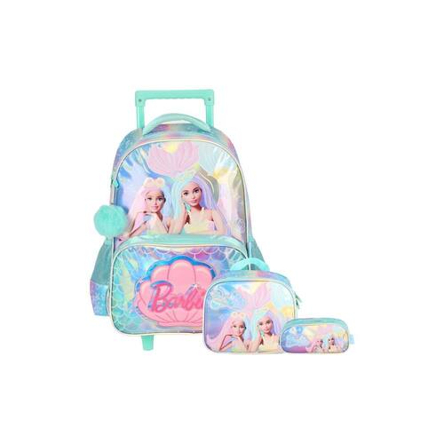Kit Escolar Mochila De Rodinha+Lancheira térmica+Estojo Triplo Barbie Holográfica: