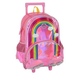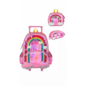 Kit mochila de rodinha + lancheira + estojo triplo up4you arco-iris Kit mochila de roda+ lancheira e estojo triplo luxcel arcoiris Kit mochila de rodinhas, lancheira e estojo luxcel Kit mochila de rodinhas com bolsos laterias em tela com elástico, sem alças de costas e reguláveis, silk frontal, bolso frontal com zíper, alça de mão. Lancheira estampada com alça de costas e alça de mão, além de etiquetas personalizadas. Estojo da mesma estampa. Características principais: Dimensões aproximadas: mochila 41 x 30 x 14cm axlxp / lancheira: 22 x 17 x 8cm / estojo: 8 x 22 x 10cm. contra defeito de fabricação.