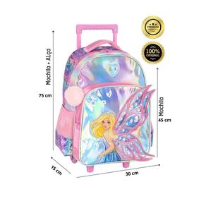 Kit Escolar Mochila De Rodinha+Lancheira térmica+Estojo Box+Estojo triplo Barbie Holográfica:
