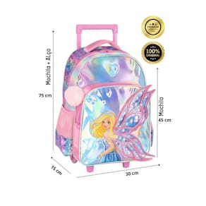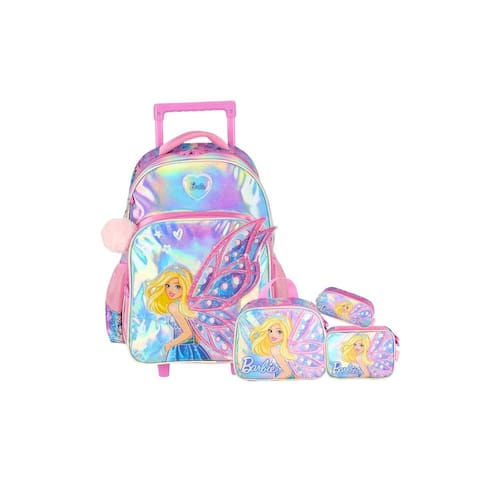 Kit Escolar Mochila De Rodinha+Lancheira térmica+Estojo Box+Estojo triplo Barbie Holográfica: