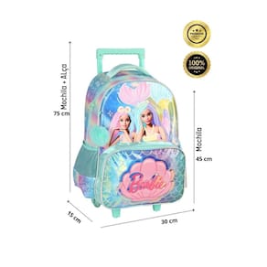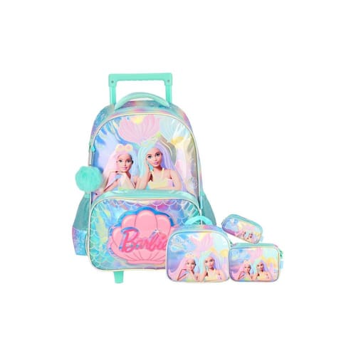 Kit Escolar Mochila De Rodinha+Lancheira térmica+Estojo Box+Estojo triplo Barbie Holográfica:
