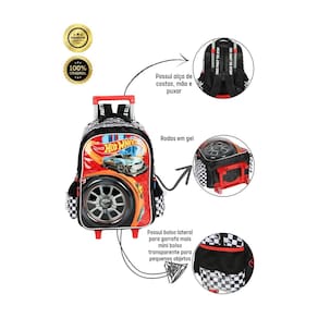 Kit Escolar Mochila com Rodas+Lancheira Térmica+Garrafa Hot Wheels