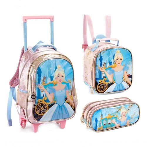 Kit Infantil Escolar Mochila, Lancheira e Estojo - Princesa
