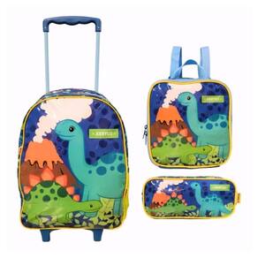 Kit mochila rodinhas 16 lancheira estojo dino kids xeryus mochila: composição: poliéster/pvc; rodinhas de silicone de alta resistência; alças de mão; medidas: 40x30x15cm; contém bolso para garrafa;lancheira: composição: poliéster/pvc; produto térmico; alça costas; elástico costas para fixação ao carrinho; medida: 22cm x 19cm x 12cmestojo: composição: poliéster/pvc; estojo simples apenas um compartimento; medida: 21cm x 9cm x 6cm atenção: imagem meramente ilustrativa. Pode ocorrer mudanças no tom da cor da tela do celular/pc para o produto real ou mudanças na embalagem do produto sem aviso prévio por parte do fabricante.