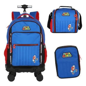 Kit Escolar Mochila com 04 Rodinhas Duplas com giros de 360º + Estojo 100 Pens e Lancheira Térmica. O carrinho é feito em alumínio e as quatro rodinhas possuem giro 360, proporcionado leveza e facilidade ao transporte. O puxador é em forma de T, com botão para regular a altura. Ela também pode ser Utilizado nas costas pois possui alças ajustáveis e macias que se adaptam ao corpo. Vem com alça de mão fixa. Além de Contar com a novidade desse ano, o borrachão na parte da base que proporciona mais durabilidade e proteção do produto. A mochila é bastante espaçosa, perfeita para acomodar livros, ficheiros, cadernos e agenda. Na parte interna são duas divisões, os 4 compartimentos são fechados por zíper. Na parte externa possui um bolso frontal grande, com fechamento em zíper, e dois bolsos laterais - Carrinho em alumínio com puxador e rodinhas; - Alça de costas acolchoada; - Alça de mão reforçada; - Mochila super leve e resistente; - Rodinhas Duplas Giros 360 - Medidas: 46x34x22 cm AxLxP Estojo super resistente e espaçoso, com capacidade máxima de 100 lápis. Ele possui dois compartimentos separados por uma divisória e vem com 20 elásticos, 10 de cada lado, para prender lápis e canetas em separado. Ideal para crianças e adolescentes levarem à escola e manterem os materiais separados e em ordem. Medida: 6x15x22 cm AxLxC Lancheira Térmica; As lancheiras são leves, fáceis de limpar e transportar, combinam com qualquer criança e ainda cabem tudo que precisam para a hora do lanche. - Alça de mão e alças para carregar no ombro; - Fechamento em zíper Tamanho/peso da Lancheira; - Altura: 23 cm - Largura: 20 cm - Profundidade: 15 cm - Peso: 200 gramas Obs.: Não acompanha potinho e garrafinha. de 6 meses contra defeito de fabricação Dicas e Cuidados; Proteja os objetos pontiagudos ou cortantes evitando o contato direto com o produto. Guarde o produto e um local seco, fresco e arejado, para evitar a proliferação de fungos que podem danificar o produto. Para Limpeza, use apenas água morna e sabão neutro nas partes metálicas somente uma flanela seca. Nunca aplique produtos abrasivos, solventes ou quaisquer agentes químicos. Para secagem, Utilize apenas pano seco. Não exponha ao sol e altas temperaturas por um período de tempo prolongado. Apare sempre os fios soltos do tecido, para que eles não se prendam no zíper. Duvida Faça-nos uma pergunta : Marca: Não Informado Ean: 6926845715371
