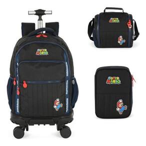 Kit Mochila Rodinhas 360 Lancheira Estojo Super Mario