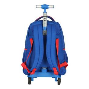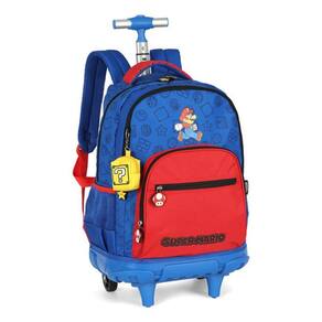 - amplo compartimento principal para melhor organização dos cadernos, livros e apostilas; - 1 compartimentos frontais com fechamento em zíper, para pequenos objetos; - dispõe de alça de mão e alça retrátil reforçada para uma melhor locomoção; - alças acolchoadas e reguláveis caso queira transportar no ombro; - rodinhas de silicone; - puxadores dos zíperes em borracha; - logo super mario estampado. - porta moeda personalizado removível. - base emborrachada - material: 100% poliéster e forro 100% poliéster.