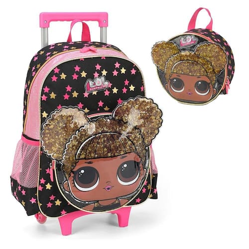 KIT MOCHILA DE RODINHAS E LANCHEIRA LUXCEL LOL