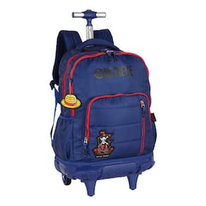 - amplo compartimento principal para melhor organização dos cadernos, livros e apostilas; - 1 compartimentos frontais com fechamento em zíper, para pequenos objetos; - dispõe de alça de mão e alça retrátil reforçada para uma melhor locomoção; - alças acolchoadas e reguláveis caso queira transportar no ombro; - puxadores dos zíperes em borracha; - aplique com acabamento bordado - chaveiro personalizado - logo one piece estampado - material: 100% poliéster e forro 100% poliéster.