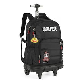 - amplo compartimento principal para melhor organização dos cadernos, livros e apostilas; - 1 compartimentos frontais com fechamento em zíper, para pequenos objetos; - dispõe de alça de mão e alça retrátil reforçada para uma melhor locomoção; - alças acolchoadas e reguláveis caso queira transportar no ombro; - puxadores dos zíperes em borracha; - aplique com acabamento bordado - chaveiro personalizado - logo one piece estampado - material: 100% poliéster e forro 100% poliéster.