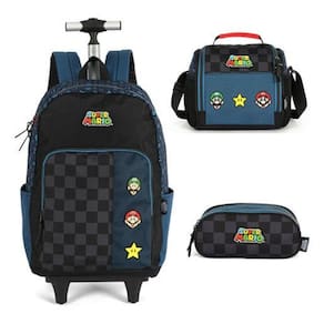 Kit Mochila Rodinhas Estojo Lancheira Super Mario
