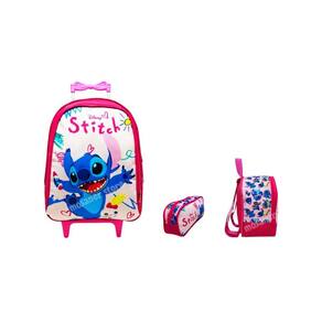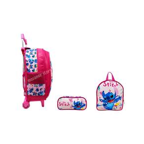Kit mochila rodinhas feminina infantil lilo e stitch Mochila de rodinhas infantil feminina lilo e stitch com lancheira térmica e estojo combinando na mesma estampa ideal para escola ou viagem. Mochila exclusiva para quem procura qualidade, estilo, modernidade e praticidade. Possui um ótimo espaço já que contém dois compartimentos com zíper e dois bolsos externos laterais. Suficiente para carregar livros, cadernos, agenda e estojo. Vem junto lancheira térmica que encaixa no carrinho de mão e conserva temperatura de alimentos e bebidas. Ideal para uso escolar ou viagem. Estampa atual, versátil e indispensável no dia-a-dia.