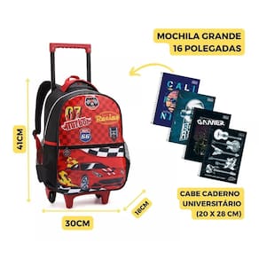 Características: -tamanho adequado para levar os itens de escola. - rodinhas em silicone para garantir a resistência necessária para andar em qualquer terreno.