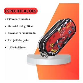 Estojo: Puxador personalizado e duas divisórias 100% poliéster 100% policloreto de vinila Medidas: Altura: 22 cm Largura: 10 cm Profundidade: 7 cm Marca: Não Informado