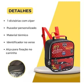 Kit mochila com rodinhas infantil carro escolar pista de corrida Cor: preto Tamanho: nico Genero: unissex Kit mochila de carrinho infantil + lancheira termica + estojo