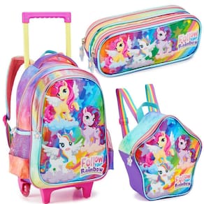 Kit Mochila Rodinhas Lancheira Estojo Escolar Unicornio