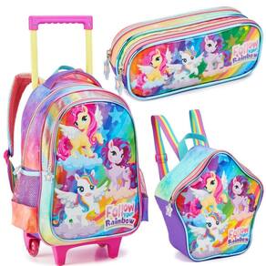 Kit Mochila Escolar Infantil Menina Rodinhas