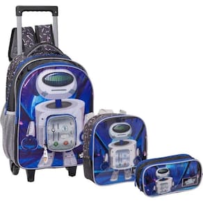 Kit Mochila Rodinhas Astronauta Lancheira Estojo Infantil Escolar Space Wars Yepp Prepare os pequenos para uma jornada intergaláctica com o Kit Mochila Rodinhas Space Wars da Yepp. Combinando praticidade, estilo e resistência, este conjunto é o companheiro perfeito para os pequenos exploradores que sonham com aventuras no espaço. Disponível nas cores azul e preto, o kit inclui: Mochila de Rodinhas - Com design de 16 polegadas, perfeita para crianças em idade escolar. - Medidas: 40,5x28,5x12 cm. - Material resistente em poliéster + PVC. - Rodinhas de silicone e carrinho embutido para transporte fácil e suave. - Compartimento principal espaçoso, dois bolsos frontais com zíper e dois bolsos laterais para garrafas. - Estampa incrível de robô intergaláctico para despertar a imaginação. Lancheira Térmica - Medidas: 23x22x10,5 cm. - Fabricada com poliéster + PVC e revestimento térmico no compartimento principal para manter os alimentos frescos. - Alça ajustável e fita para prender no carrinho da mochila. - Prática, funcional e com design que combina com o tema espacial. Estojo Duplo - Medidas: 10,5x22,5x8 cm. - Composto por poliéster + PVC, oferecendo durabilidade e fácil limpeza. - Duas divisórias para organizar lápis, canetas e outros itens essenciais. Esse kit transforma o dia a dia escolar em uma aventura cheia de estilo e funcionalidade. Ideal para manter os pertences organizados enquanto estimula a criatividade e o espírito explorador das crianças. A resistência e o acabamento de alta qualidade garantem que o kit acompanhará os pequenos em todas as missões espaciais e desafios diários. Escolha o Kit Mochila Rodinhas Space Wars e prepare sua criança para decolar rumo a novas descobertas Marca: Não Informado