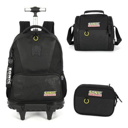 Kit Mochila Rodinhas Lancheira Estojo Sonic