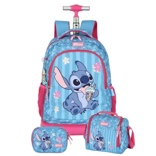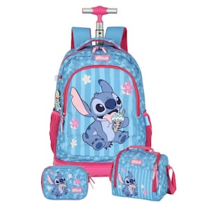 Kit Mochila Stitch Rodas Lancheira E Estojo Box Escolar Kids