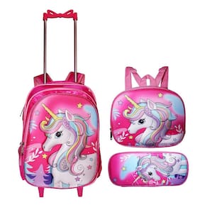 Lindo Kit De mochila escolar de rodinhas da Unicornio 3D, excelente opção para utilizar no dia a dia escolar pois além de um design único, é produzido com material resistente, confortável e de alta durabilidade. Possui um compartimento principal com espaço suficiente para cadernos, livros e acessórios, bolsos laterais para garrafinhas e estojo espaçoso com 1 compartimento.