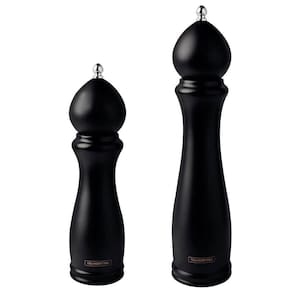 CONJUNTO COMPOSTO POR: 1 UN - MOEDOR DE PIMENTA E SAL TRAMONTINA CHURRASCO BLACK EM CERÂMICA COM RECIPIENTE DE MADEIRA 8" 26456008 1 UN - MOEDOR DE PIMENTA E SAL TRAMONTINA CHURRASCO BLACK EM CERÂMICA COM RECIPIENTE DE MADEIRA 10" 26456010