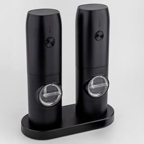 Kit com 2 moedores elétricos a pilha para grãos, temperos, sal e pimenta. Possui recipiente em ABS, capacidade de 100g e luz indicativa.Desmontável