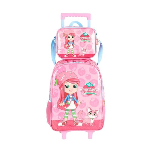 Kit Escolar Moranguinho Mochila com Rodas + Lancheira Térmica Prepare sua pequena aventureira para um dia cheio de diversão com o kit completo da Moranguinho Ideal para a escola, viagens e para o dia a dia, este kit incrível conta com mochila de rodinhas e lancheira térmica, todos personalizados com a imagem da Moranguinho. O que o kit inclui: Mochila de rodinhas: Com design moderno e espaçoso, possui compartimentos para guardar livros, cadernos e outros materiais escolares. As rodinhas facilitam o transporte e a alça de mão garantem o conforto da sua filha. Lancheira térmica: Ideal para manter os alimentos na temperatura ideal por mais tempo. Possui alça ajustável para ser carregada nas costas ou na mão.