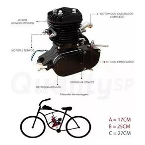 Kit Motor Bicicleta 80cc Completo Motorizada Gasolina Tanque O Kit Motor Tipo 80 Cilindradas 2 Tempos é refrigerado a ar e tem um consumo médio entre 30 a 45km por litro.