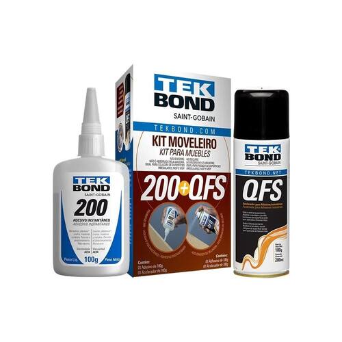 1 - Limpe as peças a serem coladas, garantindo que estejam livres de sujeira e oleosidade. 2 - Aplique o Tekbond 200 em uma das peças a serem coladas. 3 - Aplique o Acelerador QFS na outra peça. 4 - Una as partes, pressionando por poucos segundos, até que fiquem definitivamente unidas.
