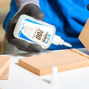 Importante: Não aplique o acelerador diretamente sobre a cola, pois isso causará a secagem imediata, impossibilitando a colagem correta.