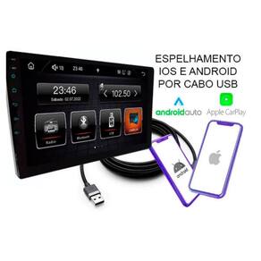 Você também pode espelhar de uma maneira bem simples seu celular Android ou IOS diretamente na tela da RS-908BR através do cabo USB e assim usufruir todos os benefícios do espelhamento, do CarPlay e do AndroidAuto. Especificação Técnica:• Painel: Fixo com Botões em 7 Cores de Iluminação (Azul, Azul Claro, Branco, Amarelo, Vermelho, Roxo e Verde)• Tela: Full Touch 9" Capacitiva• Rádio: FM com Memória para 18 Estações FM• Conexões: Bluetooth• Entradas Traseiras: 2 USB (USB e USB-C), 1 Vídeo Auxiliar, 1 Câmera de Ré, 1 Auxiliar e 1 Microfone Externo• Saídas: 2 RCA (Audio) e 2 RCA (Vídeo)• Tipo de Conector: 16 vias• Comando de Volante: • Potência: 4 Canais de 50 Watts RMS