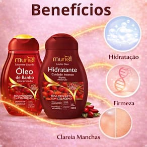 Produto: Kit Muriel Rosa Mosqueta Com Colágeno: Sabonete Óleo de Banho 230ml e Loção Deo Hidratante 200ml