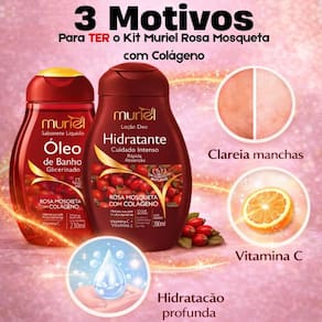 Descubra o segredo para uma pele radiante e intensamente hidratada com o Kit Muriel Rosa Mosqueta Com Colágeno. Este conjunto exclusivo, assinado pela renomada marca MURIEL, combina a tradição do cuidado com a pele e a inovação científica, oferecendo uma experiência única de beleza e bem-estar. Desenvolvido para mulheres que buscam restaurar a vitalidade da pele, combater o ressecamento e realçar a beleza natural, este kit é a solução ideal para uma rotina de cuidados eficaz e um toque sedoso. Sinta a diferença de uma pele nutrida, visivelmente mais saudável e macia, com a poderosa ação da Rosa Mosqueta e do Colágeno.