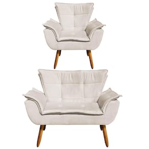 Kit Sofá Retrô Namoradeira e 01 Poltrona Opala Suede Bege - D'Rossi