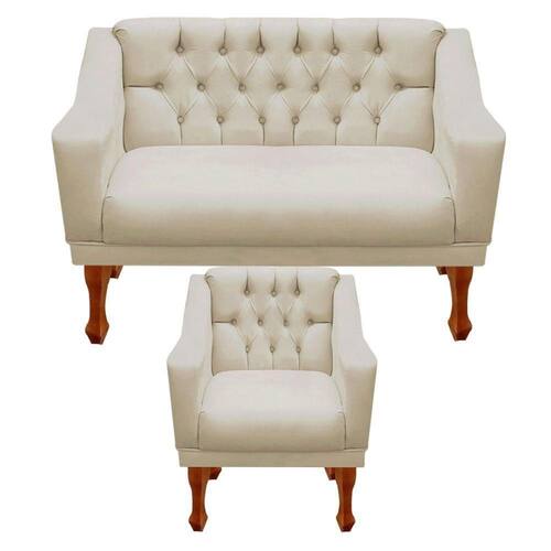 Kit Namoradeira + 1 Poltrona Decorativa Grécia Dritex Cor:sintetico Bege