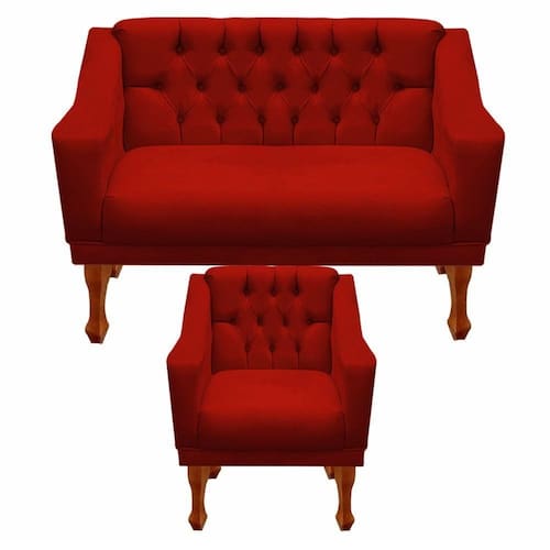 Kit Namoradeira + 1 Poltrona Decorativa Grécia Dritex Suede Vermelho