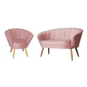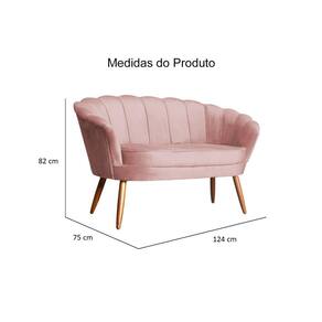 Kit Namoradeira + 1 Poltrona Decorativa Pétala Veludo Rosa Pés Madeira Ms Decor
