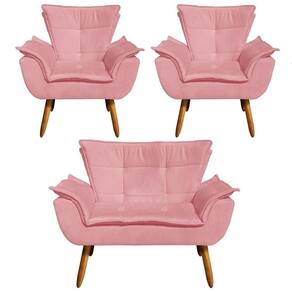 ColorSimple: Rosê | ColorSupplier: Rose | ColorFamily: Rosê | AssemblyRequired: Sim, sugerimos a contratação do nosso de montagem (para os CEPs em que o está dispon | Marca: Ibiza | Peso Suportado: 120 kg | Tipo de Garantia: Fabricante | ProductWarranty: 90 dias após o do produto | Altura: 91 cm | Color: Rosê | Manual: Sim | ProductInstructions: Produto para uso em ambiente interno, nao devendo ficar exposto ao sol, calor e umidade excessivos. | ProductContents: 1 Namoradeira, 2 Poltronas | SupplierSimpleName: Kit Namoradeira 2 Lugares e 2 Poltronas Decorativas Pés Palito Opla Suede Rosê - Ibiza | Gênero: Unisex | Material: Madeira de Eucalipto | Peso: 50 kg | Origem: | Largura: 128 cm | Cor: Rosê | ProductHeight: 91 | MaterialFamily: Madeira de Eucalipto | Requere montagem: Sim | ProductWeight: 50 | ProductWidth: 128 | Profundidade: 62 cm | SizeDescription: 91 x 128 x 62 cm | ProductLength: 62 | OriginCountry: | Model: Opla | OriginState: PR