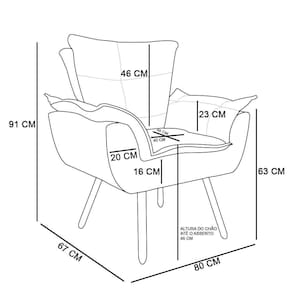 Poltrona( L x A x P): 80 x 91 x 62 cm.