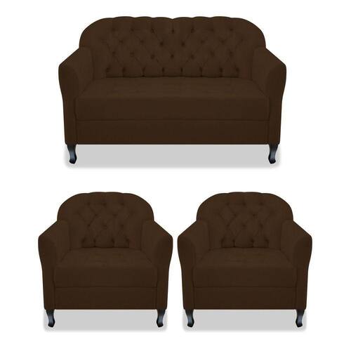 Gostaria de um móvel que trouxesse mais elegância e sofisticação para o seu lar? O Kit Namoradeira e 02 Poltronas Julia A02 é sua melhor opção! Com característica moderna e com acabamento de qualidade, estes produtos atenderão suas expectativas! Não perca essa oportunidade e adquira já a sua!Especificações Técnicas do Kit Namoradeira e 02 Poltronas Julia A02: -Namoradeira Julia A02:- Altura: 80 cm;- Largura Total: 120 cm;- Profundidade: 70 cm;- Peso: 35 Kg;- Peso Suportado: 120 Kg;-Poltrona Julia A02:- Altura: 80 cm;- Largura Total: 69 cm;- Profundidade: 70 cm;- Peso: 20 Kg;- Peso Suportado: 120 Kg;Diferenciais do Kit Namoradeira e 02 Poltronas Julia A02: -Namoradeira Julia A02:- Design Moderno;- Detalhes em Botonê;- Detalhes do Pé: acompanham pés de madeira de alta resistência;-Poltrona Julia A02:- Material da Estrutura: fabricado com Madeira Pinus e Eucalipto Reflorestada, e alguns detalhes em MDF;- Tipo de Assento: Estofado e com espuma de densidade D-26;- Tipo de Encosto: Estofado e com espuma de densidade D-18;- Detalhes do Pé: acompanham pés de madeira de alta resistência;Recomendações de limpeza: -Limpar com flanela limpa e seca. Não molhar o móvel e não expor em lugar úmido ou próximo de fontes de calor. Não usar produtos abrasivos.Observações Importantes: - As imagens ambientadas são meramente ilustrativas e podem apresentar itens que não compõe o produto;- Objetos decorativos que aparecem na foto não acompanham o produto;- As cores do produto podem variar de acordo com o monitor, a iluminação do ambiente, ou sua percepção visual;- O Kit Namoradeira e 02 Poltronas Julia A02 chegará montado para você, bastando encaixar os pés;- Confira as dimensões antes da compra e certifique-se de que o produto passará por elevadores, portas e corredores;- Ao receber seus produtos, verifique no ato do recebimento qualquer dano na embalagem;- Produto para uso residencial em ambiente interno, não devendo ficar exposto diretamente ao sol, calor e umidades excessivas.