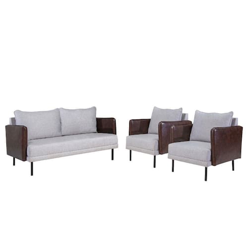 Conjunto Namoradeira E 02 Poltronas Orion Via Linho Cinza/courano Marrom