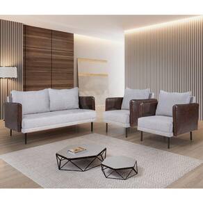 Kit Namoradeira E 02 Poltronas Orion Via Encanto Linho Cinza/Courano Marrom