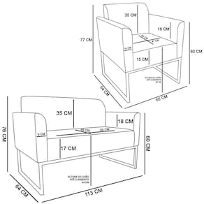 Faça uma escolha inteligente e adquira conosco este Conjunto de Poltrona Namoradeira e Poltrona Decorativa, um toque de classe para o seu cantinho favorito.