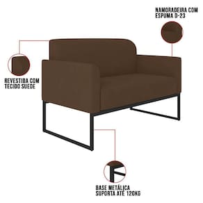 O momento em que decidimos mobiliar nossa casa é um evento muito especial, pois representa o que gostamos e o que irá refletir através dos móveis que irão compor cada espaço do nosso Lar.Cada escolha é uma oportunidade de imprimir o que sentimos, e para Sala de Estar desejamos conforto e beleza, para a hora de um bate-papo ou um belo café da tarde. O Kit Namoradeira e 1 Poltrona Decorativa Base Industrial Preta Maressa S06 Suede Marrom - Ibiza pode transformar seu ambiente em algo único, sua estrutura em metal é firme e com fino acabamento, o estofado é macio e traz a leveza que o Estilo Industrial pode fazer em sua essência.Faça uma escolha inteligente e adquira conosco este Conjunto de Poltrona Namoradeira e Poltrona Decorativa, um toque de classe para o seu cantinho favorito.EspecificaçõesDimensões do Produto:Poltrona (L x A x P): 65 x 77 x 64 cm.Namoradeira (L x A x P): 113 x 76 x 64 cm.Profundidade do assento: 46 cm.Largura do assento: 95 cm.Altura do assento ao chão: 44 cm.Altura do encosto: 35 cm.Altura Interna do Braço: 18 cm.Altura dos pés: 30 cm.Peso: 33 kg.Características do ProdutoMaterial da Estrutura: Madeira reflorestada de Eucalipto..Material da Espuma: Espuma D-28 no assento e encosto e D-23 nos braços..Peso Suportado: Até 360 Kg.Revestimento: Suede.Tipo de Encosto: Fixo.Tipo de Assento: Fixo.Quantidade de Lugares: 3 Lugares.Possui Pés: Sim.Material dos Pés: Base Industrial.Diferenciais:- Design moderno.- Percintas elásticas no assento.Sistema de Montagem: O produto é enviado montado, sendo necessário apenas fixar a base.Volumes: 3 Volumes.Conteúdo da Embalagem: 1 Namoradeira e 1 Poltrona Decorativa.Garantia do Fabricante: 90 dias contra defeito de fabricação.Montagem: Recomendamos que seja feita por um profissional.Recomendação de Limpeza: Utilize pano levemente úmido.Observações importantes:- Produto para uso residencial em ambiente interno, não devendo ficar exposto diretamente ao sol, calor e umidades excessivas.- Pode haver alguma diferença de tonalidade entre a imagem e o produto real, por conta do tratamento de imagens e a calibração de cores do seu monitor.- As imagens são meramente ilustrativas, não acompanham objetos de decoração e eletrônicos.- Confira o estado da embalagem, não devendo assinar o comprovante em caso de danos.- Não asseguramos, no ato da entrega, por subir escadas/elevadores, pelo transporte por guincho em apartamentos ou montagem, desmontagem e instalações. Eventuais despesas são por conta do comprador.- Confira as dimensões do produto e certifique-se de que passará normalmente por supostos elevadores, portas, escadas e/ou corredores de sua residência.