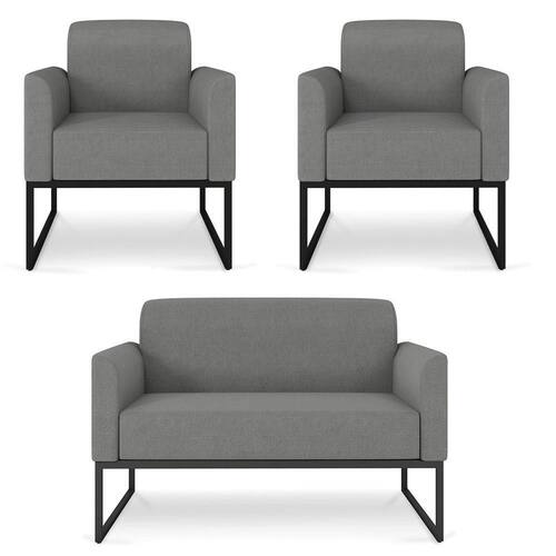 Cada escolha é uma oportunidade de imprimir o que sentimos, e para Sala de Estar desejamos conforto e beleza, para a hora de um bate-papo ou um belo café da tarde. OKit Namoradeira e 2 Poltronas Decorativas Base Industrial Preta Maressa A26 Linho Grafite - Ibiza pode transformar seu ambiente em algo único, sua estrutura em metal é firme e com fino acabamento, o estofado é macio e traz a leveza que o Estilo Industrial pode fazer em sua essência.