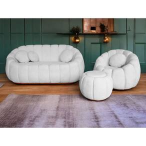 Kit Namoradeira Mais Poltrona e Puff Concha Fixo Boucle - Estopar - Prata