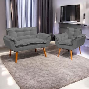 Sua estrutura é fabricada em madeira maciça e eucalipto, garantindo resistência e durabilidade. O estofamento em tecido suede oferece um toque macio e refinado, enquanto o preenchimento em fibra siliconada proporciona extremo conforto. A namoradeira conta com pés de madeira na tonalidade castanho, agregando charme e estabilidade, enquanto a poltrona se destaca pelos pés em formato trapézio, conferindo um toque moderno. Com qualidade excepcional, esse kit transforma qualquer espaço em um ambiente aconchegante e sofisticado.